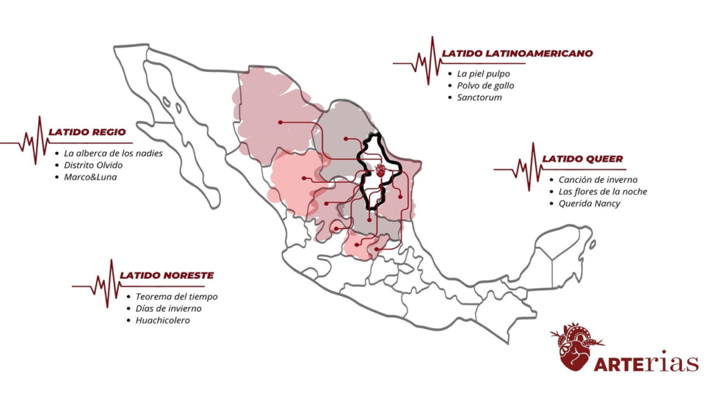 Desde sus más de 20 años de existencia, el Festival Internacional de Cine de Monterrey A.C. (antes Festival Internacional de Cine y Video Voladero) se ha consolidado como una plataforma de exhibición, formación y vinculación en Monterrey, Nuevo León. Más allá de ese territorio, hemos realizado esfuerzos particulares para llevar cine mexicano que ha pasado por las ediciones del festival a otros públicos. Nombremos, por ejemplo, la colaboración con el Festival Santa Lucía en Monterrey, la ruta Panoramas por el estado de Nuevo León y las presentaciones especiales en diversas sedes del país a lo largo de dieciocho años. Pero no fue hasta el año pasado, 2023, que establecimos el programa ARTErias: un circuito de distribución y exhibición del ficmonterrey que busca contribuir al posicionamiento y la vinculación del cine mexicano con sus públicos, sobre todo en diversos territorios de Nuevo León y estados colindantes.